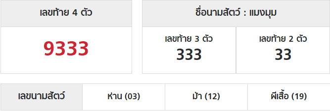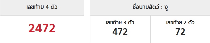 | ม้า 12,52,92 | ตะขาบ 0,20,60 | อิเห็น 36,76 | งู 32,72 |