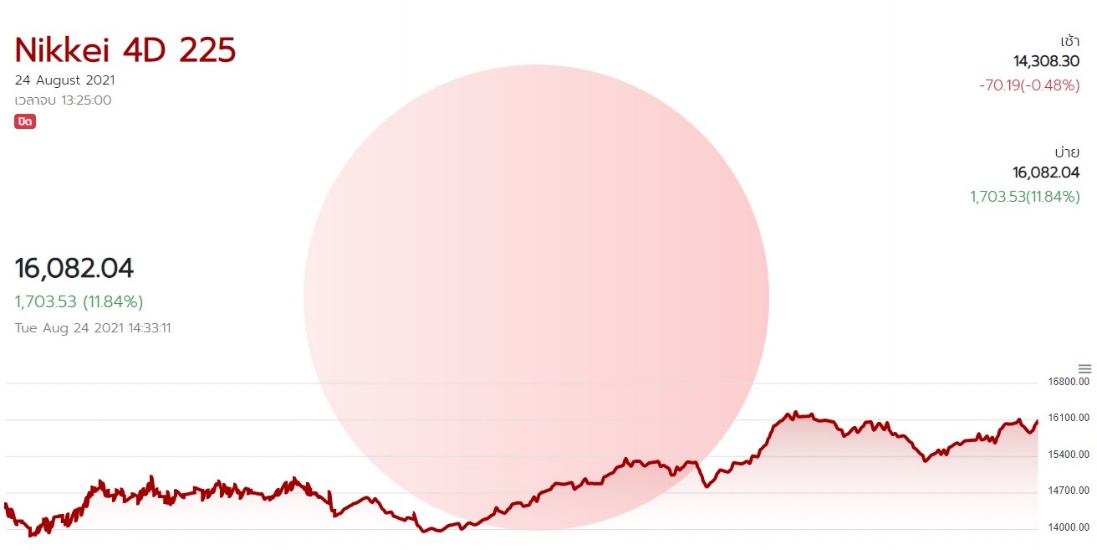 ตัวอย่างกราฟแสดงผลการออกรางวัลของ หวยหุ้น Nikkei 4D 225