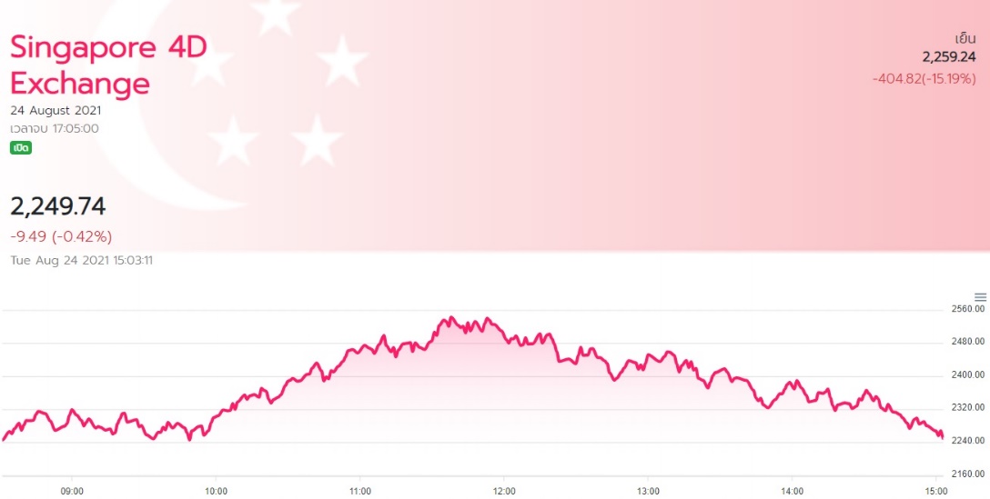 ตัวอย่างกราฟแสดงผลการออกรางวัลของ หวยหุ้น Singapore 4D Exchange
