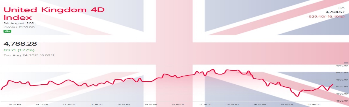 หวยหุ้น United Kingdom 4D Index/Germany 4D Index/Russia 4D Index ทั้งสามชนิดนี้จะเปิดให้เล่นพร้อมกันในเวลา 14.00 น. และปิดให้เล่นในเวลาเดียวกันคือ 21.50 น. ส่วนผลรางวัลจะออกในเวลา 21.55 น.